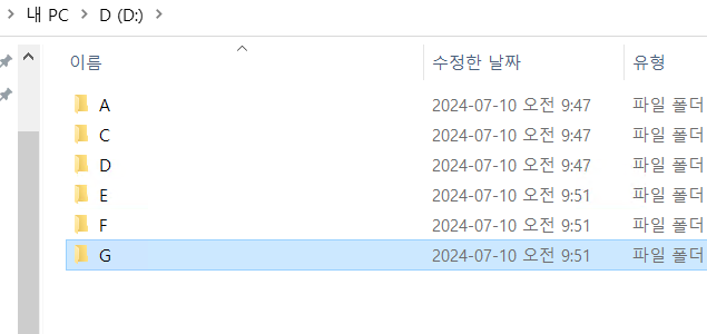 Snapshot-02에는 A, C, D, E, F, G가 백업되어 있었다.