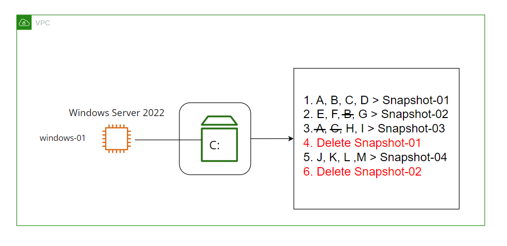 + 이후 Snapshot-01을 삭제했다고 치자.