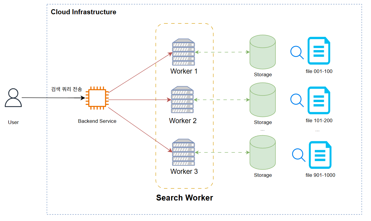 - 백엔드 서버에서는 모든 워커의 검색 결과를 종합한다.
