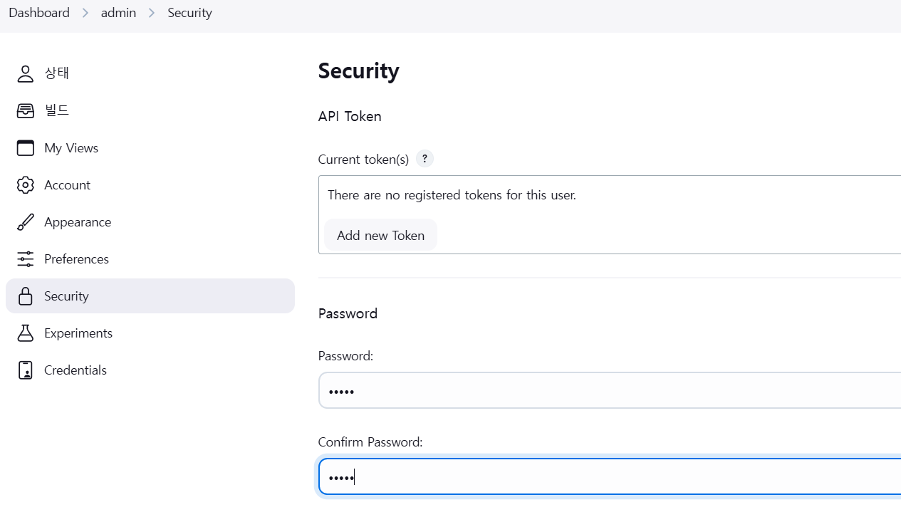 우선 간편한 로그인을 위해서 젠킨스 서버의 admin 계정 비밀번호를 변경하겠다...