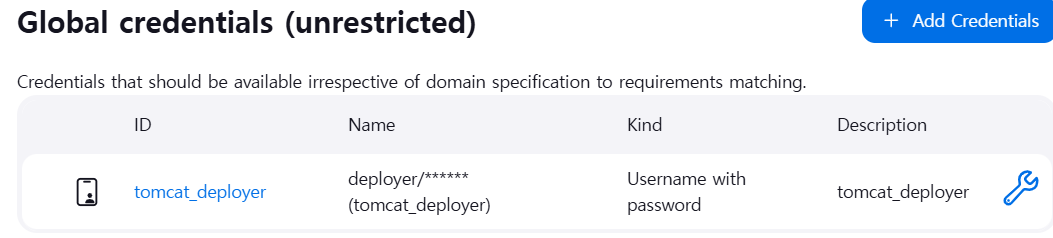 - 젠킨스 콘솔에서 Tomcat 서버의 자격 증명(Credentials) 설정하기