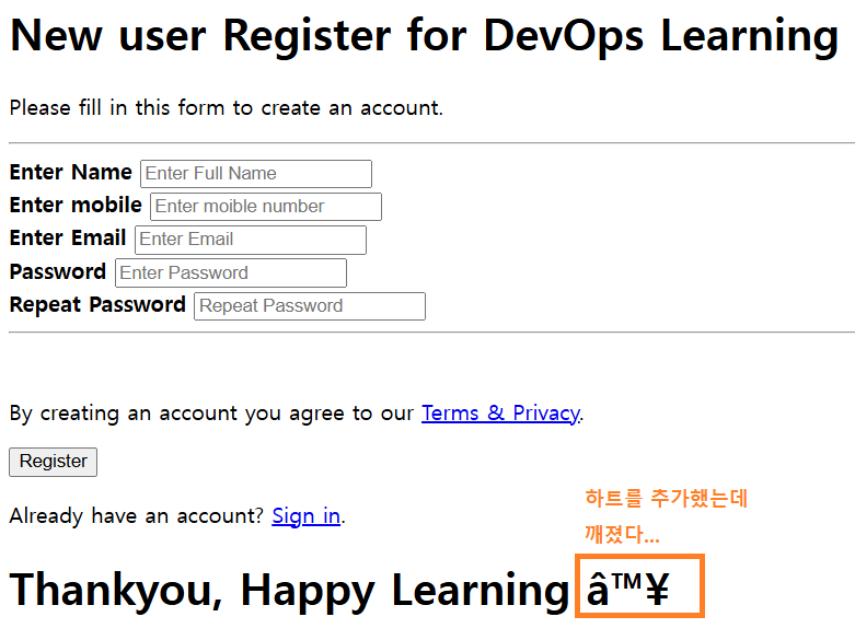 로그인 페이지의 코드를 수정하고 깃허브에 코드를 업로드하면 젠킨스는 빌드 트리거에 의해 1분마다 변경 사항이 있는지 확인하고 업데이트한다.