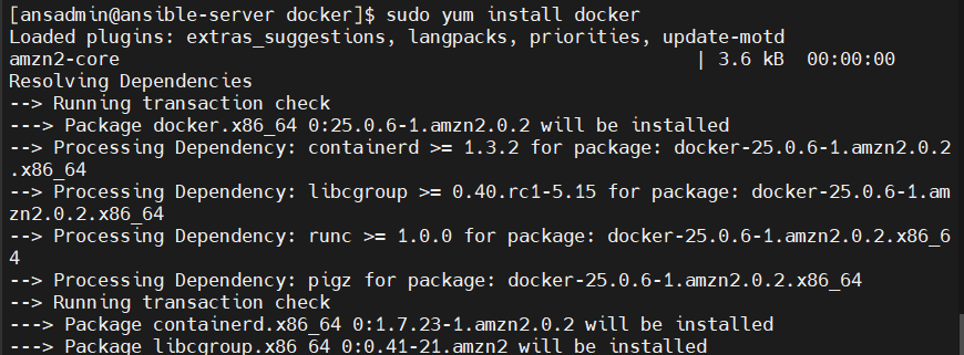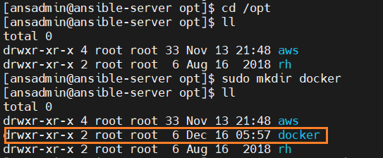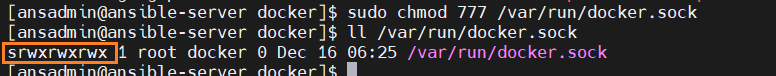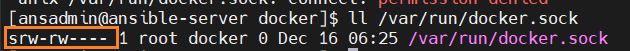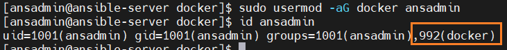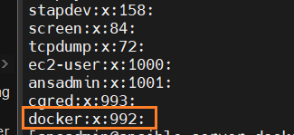 도커를 설치하면 /etc/group에 docker가 생성된 것을 확인할 수 있다. 원활한 도커 컨테이너 배포를 위해 ansadmin에게 docker 그룹을 추가해준다.