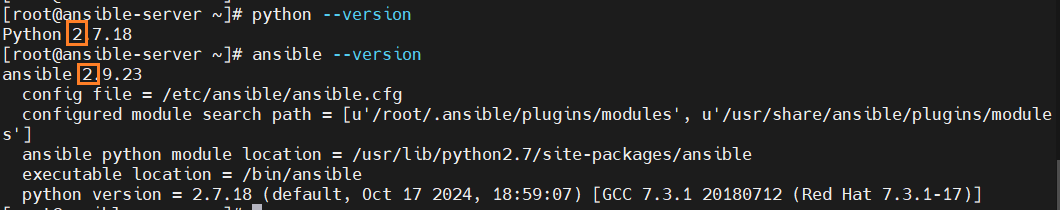 ansible2를 설치했기 때문에 python도 버전 2가 설치된 것을 확인할 수 있다.