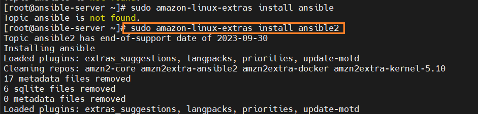 yum 명령을 사용해서 ansible을 설치해보려 했으나, 패키지가 없다고 해서 amazon-linux-extras install ansible2 명령을 사용한다.