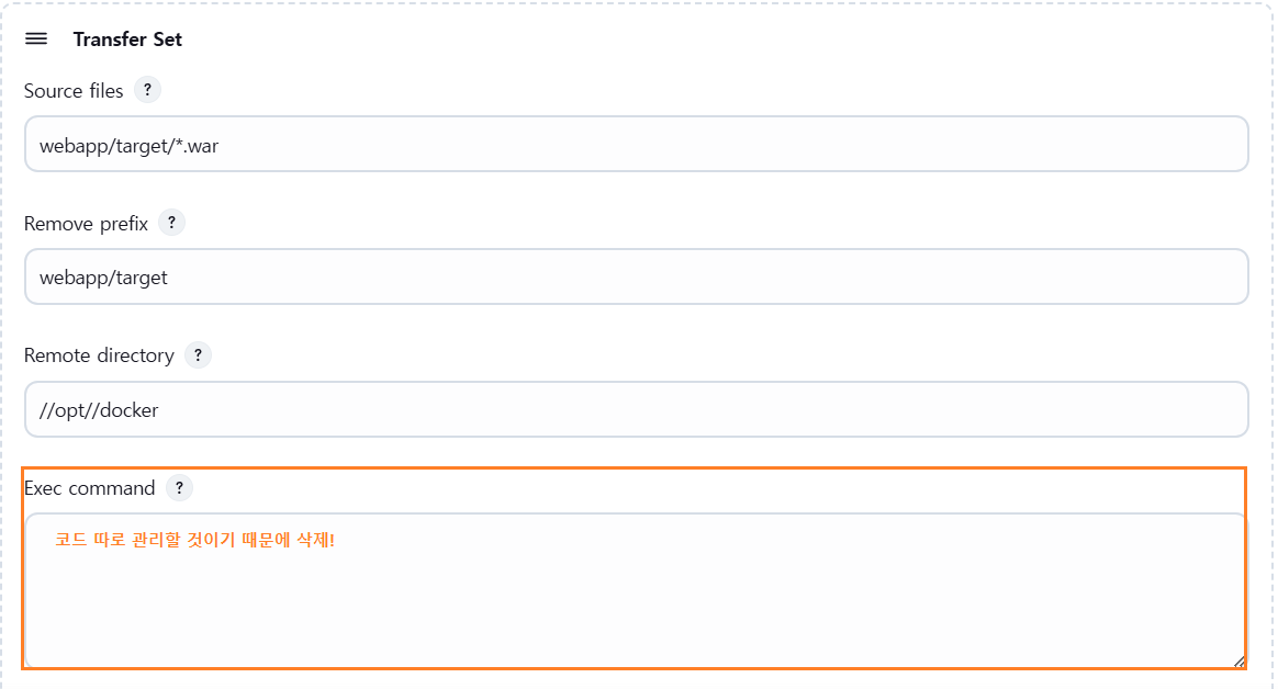 기존에 작성되어 있던 이미지와 컨테이너 자동 배포 코드는 ansible 서버에서 직접 관리할 것이기 때문에 모두 삭제해준다!