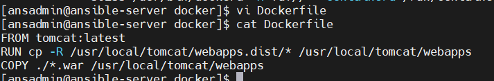 이전 포스팅에서 만들어 둔 Dockerfile을 복사하여 ansible-server에 만든다.