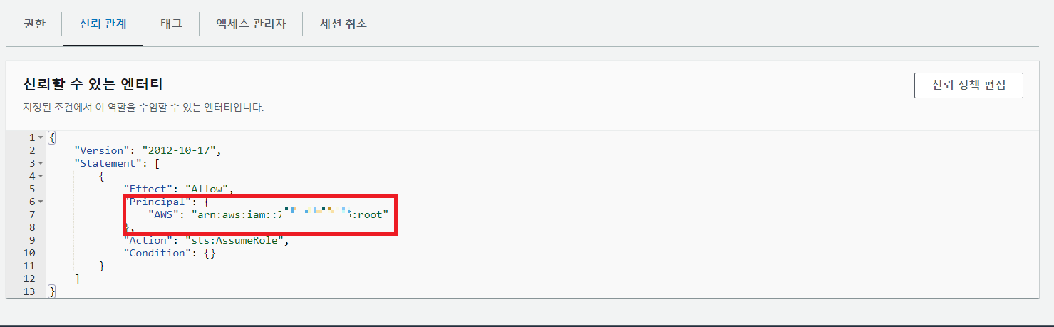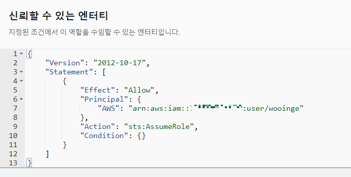 1. 역할 신뢰 관계에 유저 등록(json 파일 편집)하여 역할 전환