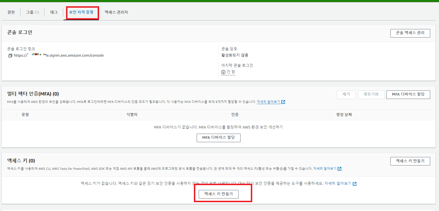특히 secret access key는 cli 사용하기 위해 생성한다.