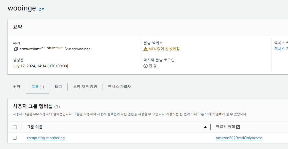 - EC2FullAccess => 모자 신뢰관계에 유저 등록