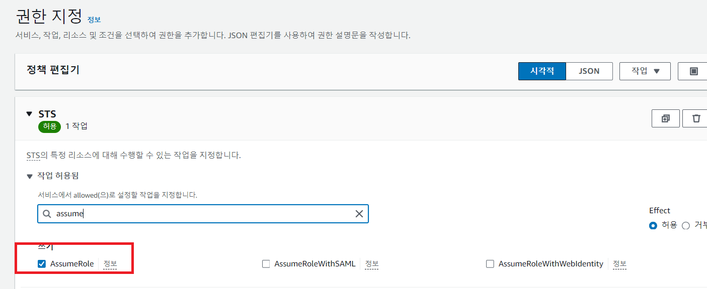 2. 유저에게 모자를 쓸 수 있는 권한을 부여하기 위한 STS 정책 만들기