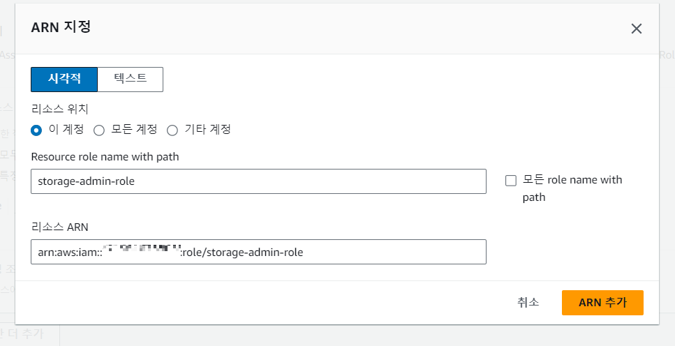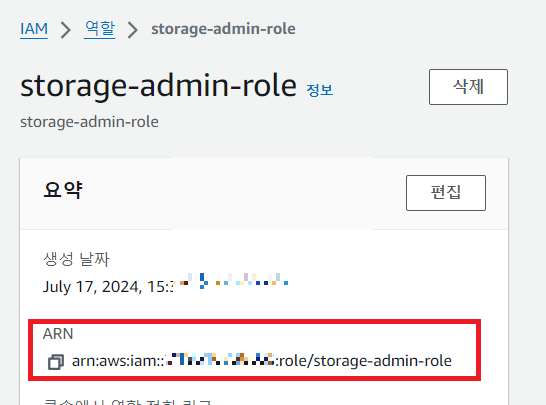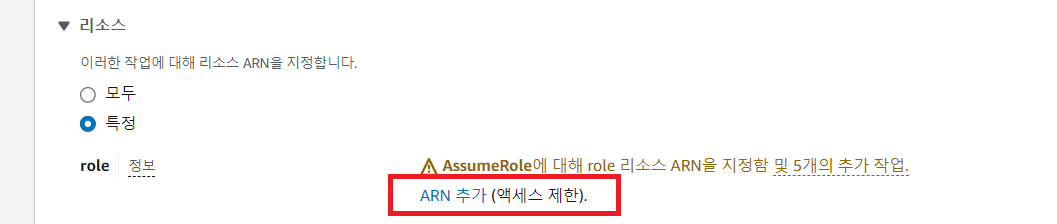 어떤 역할을 권한에 부여할 것인지 역할의 ARN을 추가해준다.