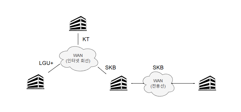 - 직접 구축할 수 없는 범위의 네트워크다. → 통신사업자로부터 회선을 임대해 사용!