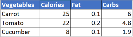 Vegetables:
