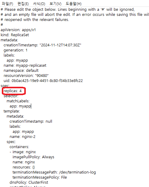 1. yaml 파일을 수정한 뒤 kubectl replace 명령어 사용하기