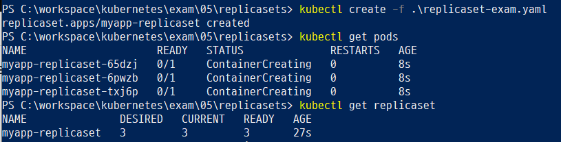 레플리카셋이 무사히 생성된 것을 확인할 수 있다.