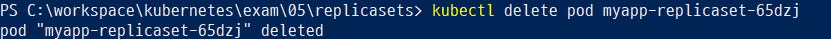 yaml 파일에 작성된 pod의 최소 개수는 3개이다. 이 중 하나를 지우면 어떻게 될까?