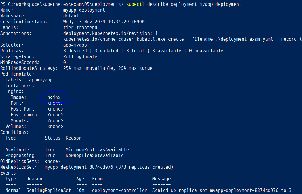 이미지를 두 번 변경했으니 현재 deployment의 버전은 3이 된 것을 확인할 수 있다.