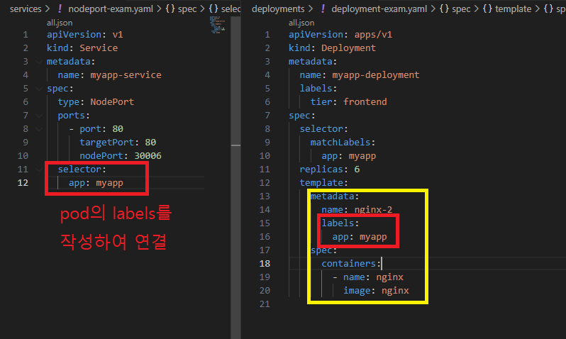 | selector | 연결할 pod의 labels |