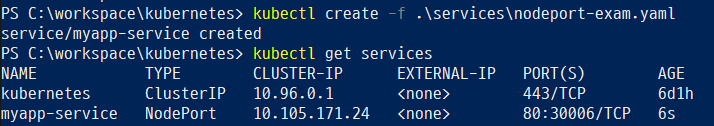 Pod, ReplicaSet, Deployment를 생성할 때처럼 서비스도 yaml 파일을 작성하여 생성한다.