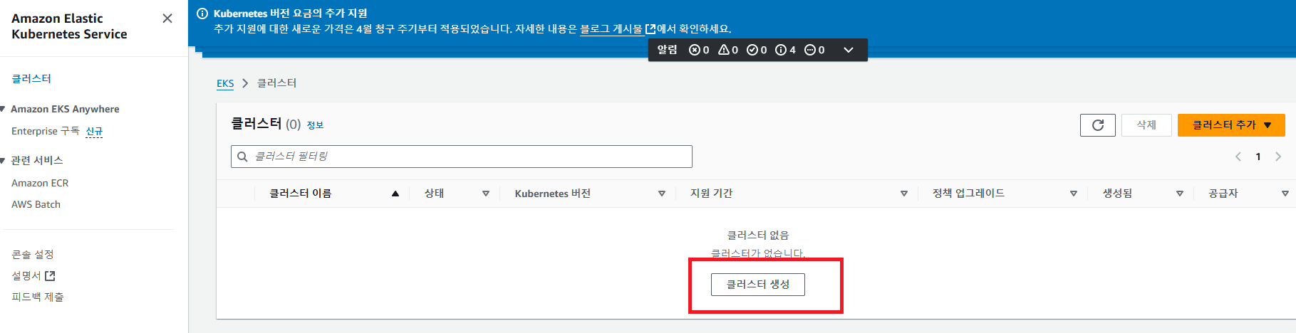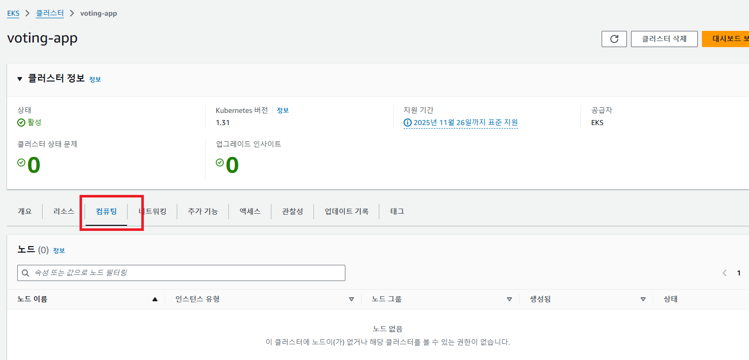 정말 슬프다... 나는 가장 최신 버전인 1.31을 선택하여 클러스터를 생성했기 때문이다...