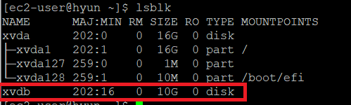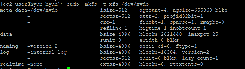 > mkfs -t [파일 시스템 종류] [디스크 이름]