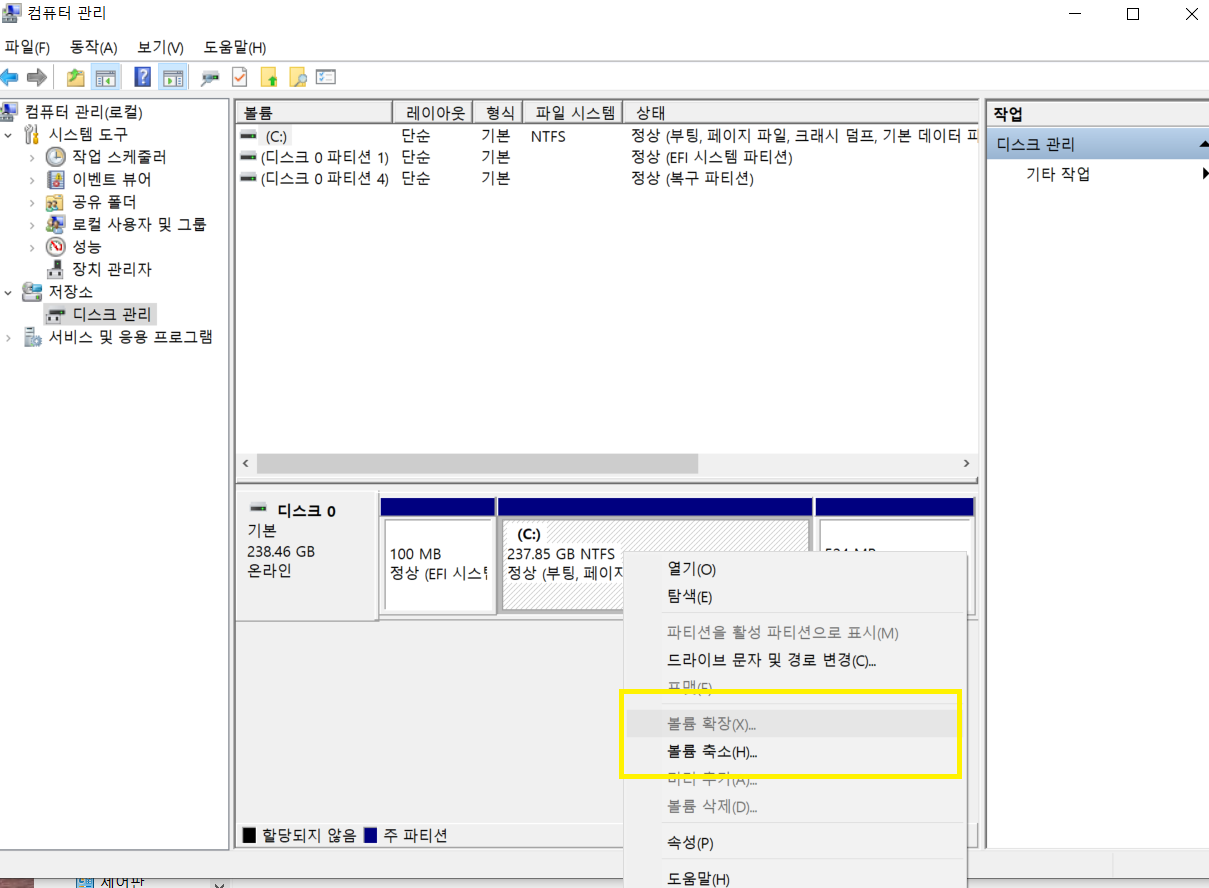 1. C 드라이브 기존 용량에서 10GB 늘리기
