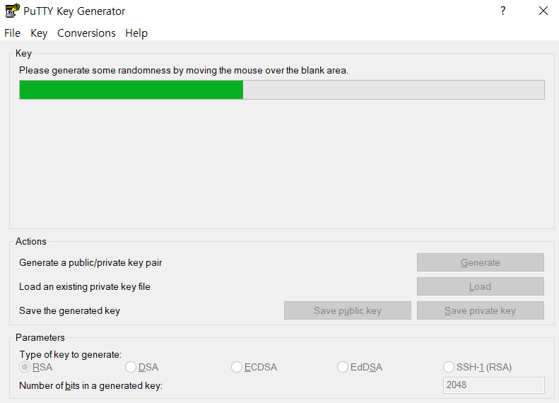 Generate를 누르면 키 생성이 되는데, 마우스 포인트를 계속 움직여줘야 한다.