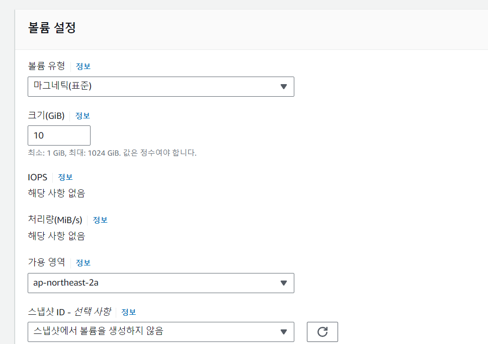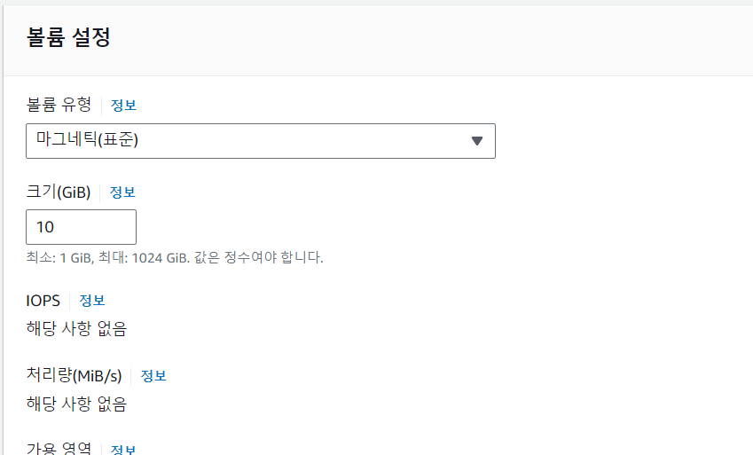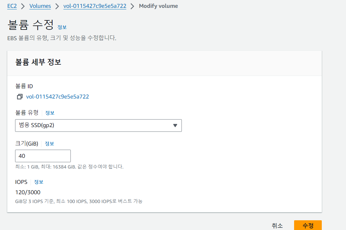 * 용량을 늘리는 것은 가능하지만 줄이는 것은 가능하지 않다. 볼륨 타입을 변경하는 것은 가능하다.