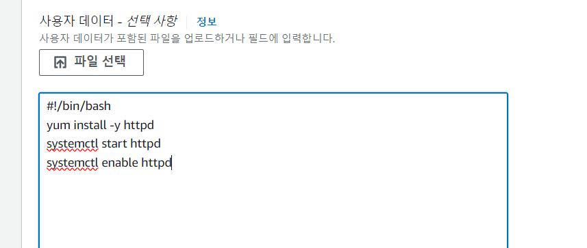 httpd 설치, httpd 서비스 구동, 부팅 시 httpd 자동 시작 가능한 스크립트를 입력하였다.