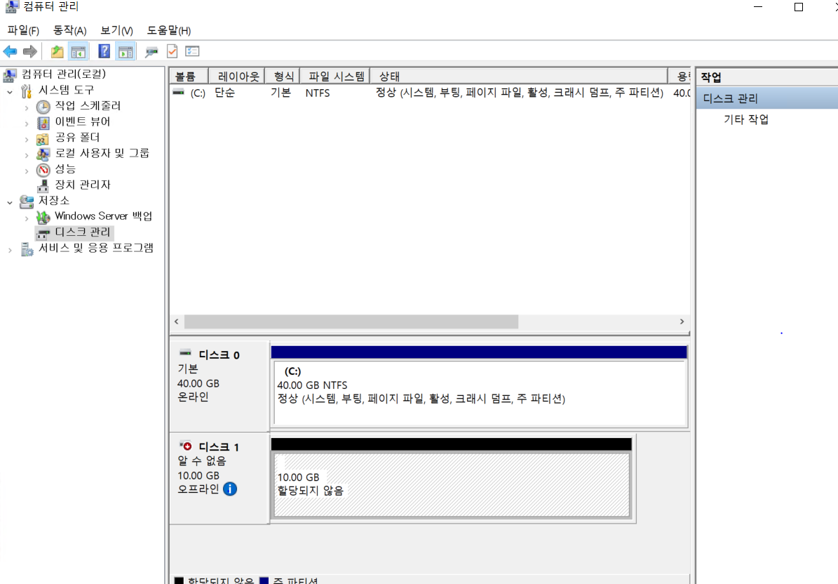 윈도우 서버에서 볼륨을 확장해야 한다.