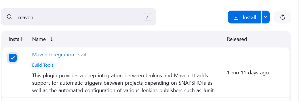 - Jenkins 콘솔에서 Maven 플러그인 설치
