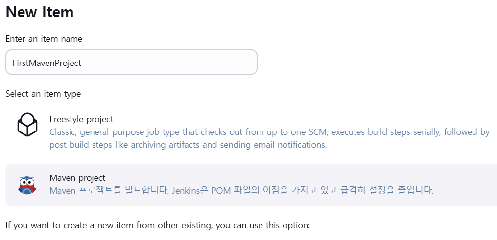 3. 젠킨스 프로젝트 생성