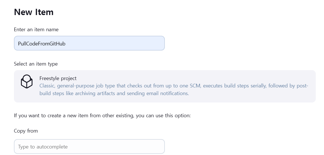프로젝트 타입: Freestyle project