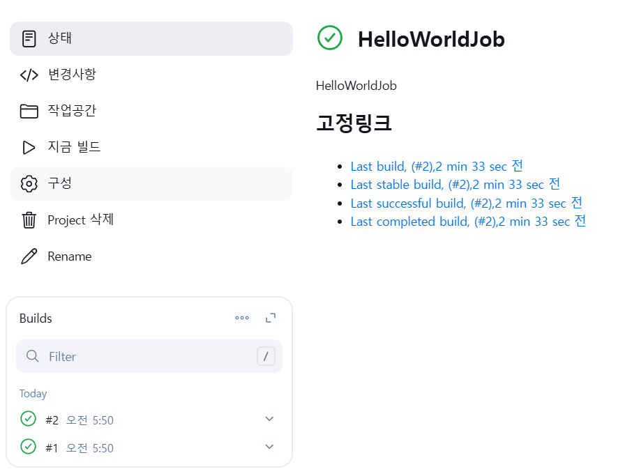 build now(지금 빌드)를 클릭하면 프로젝트 빌드가 시작된다.