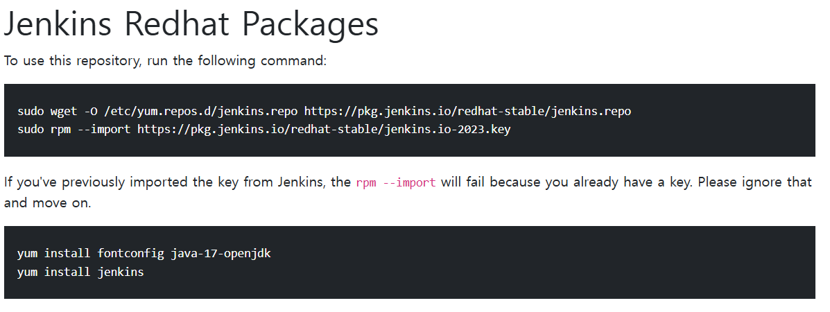아래와 같은 커맨드를 입력하여 Jenkins를 설치하면 된다.