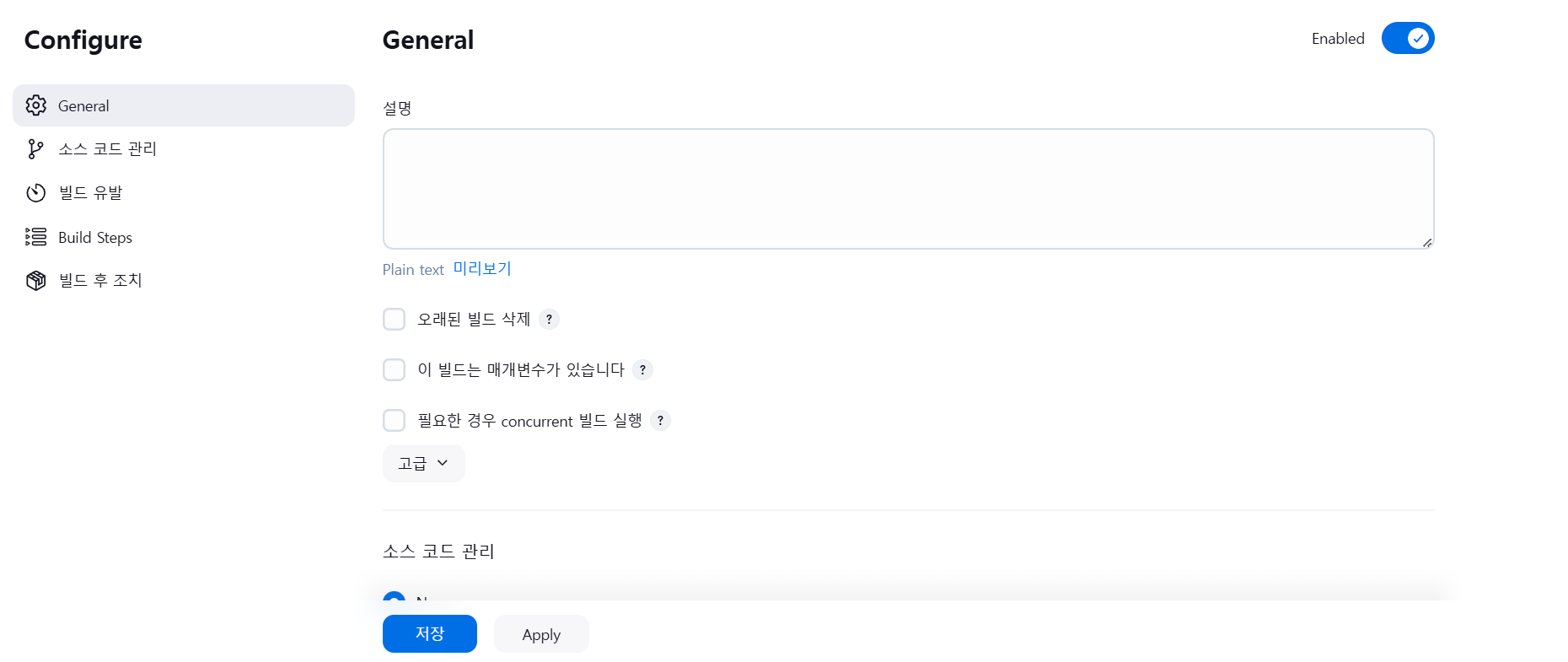 Apply 후 저장 버튼을 눌러 설정을 마무리한다.