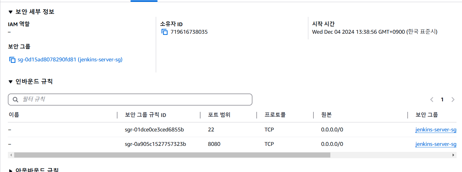 ** Jenkins의 포트 번호는 8080이므로 인바운드 규칙에 추가해야 한다!