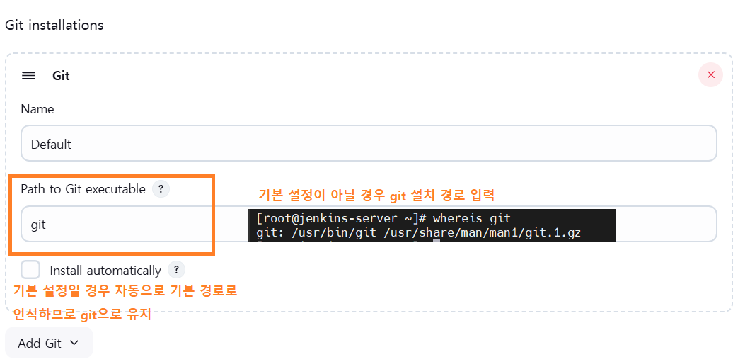 jenkins와 git을 통합하기 위해서는 당연하게도 git이 설치되어 있어야 한다.