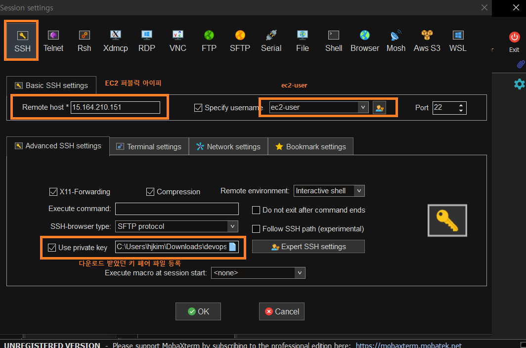 * MobaXTerm 사용할 것이기 때문에 .pem으로 다운로드 받았다.