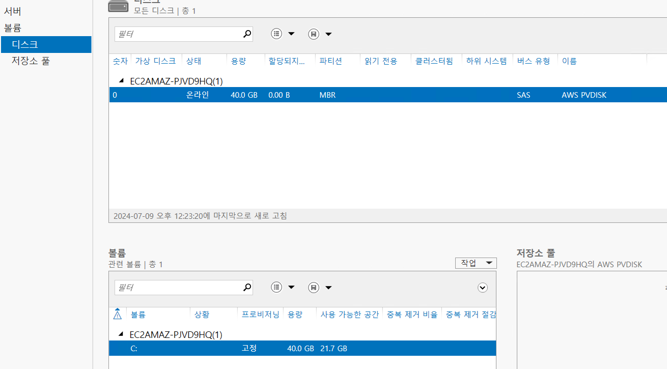 윈도우 서버에서 볼륨을 확장해야 한다.
